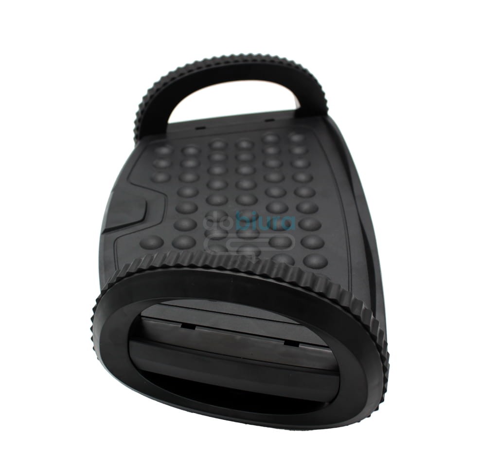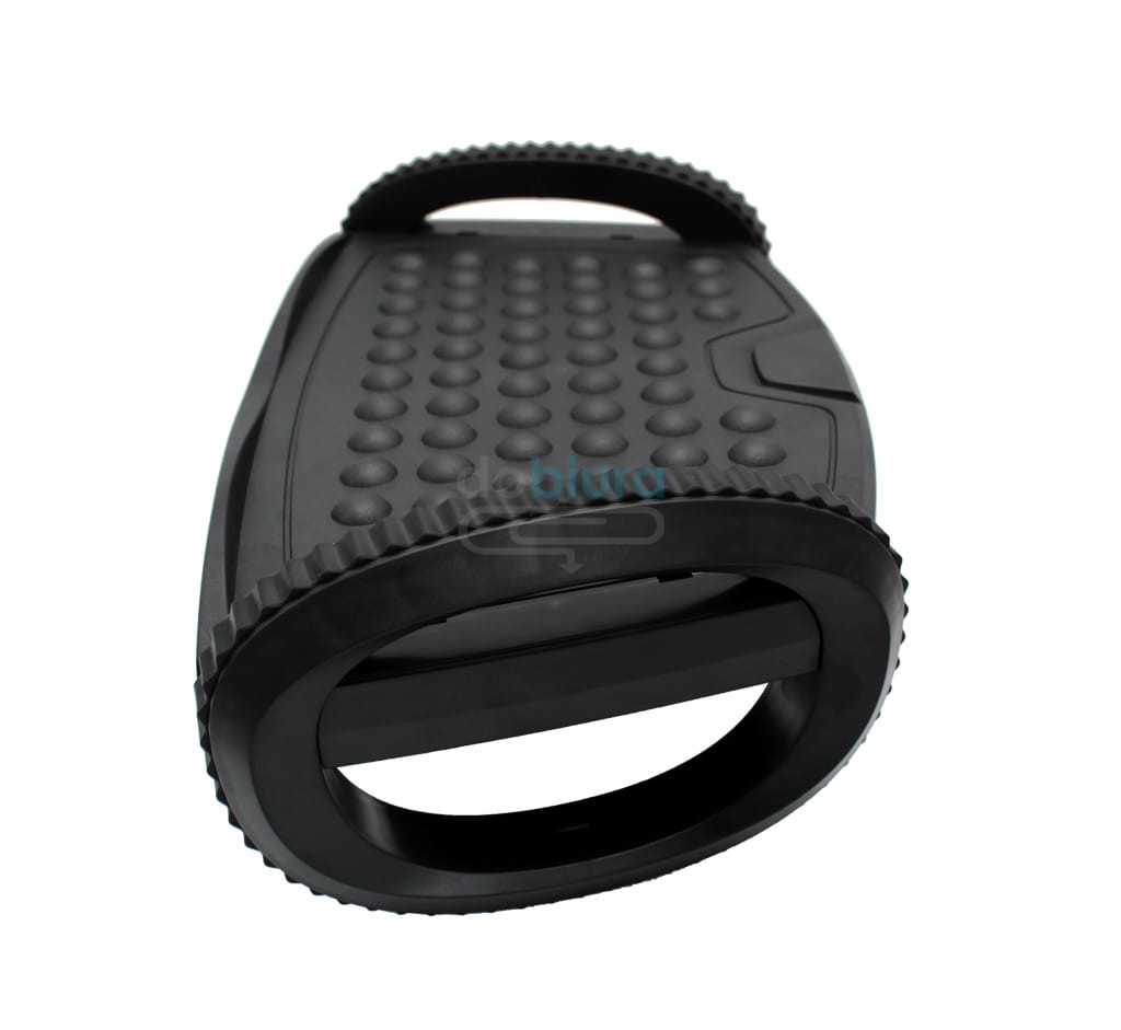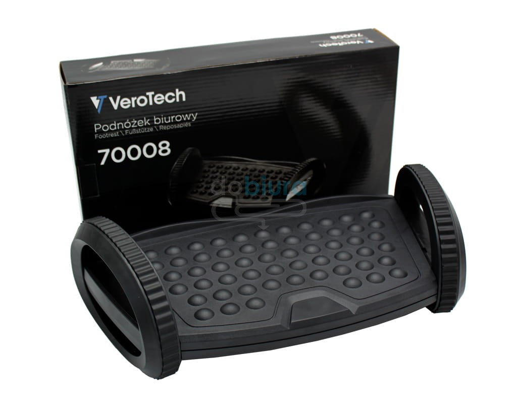 Podstawka pod stopy marki VeroTech przeznaczona jest przede wszystkim dla osób, które na co dzień wykonują pracę biurową. Specjalna, wypukła powierzchnia posiada wypustkami, które masują zmęczone stopy i przynoszą im ulgą. Produkt jest wyjątkowo komfortowy w użytkowaniu. Pozwala spokojnie zdjąć buty i pozostać boso bez odczuwania chłodu czy dyskomfortu. Wysokiej jakości podnóżek biurowy marki VeroTech ma ergonomiczny kształt, dzięki czemu ułatwia utrzymanie prawidłowej postawy ciała podczas siedzenia przy komputerze oraz poprawia krążenie. Znacznie zmniejsza zmęczenie mięśni i obciążenie nóg. Podstawka pod stopy VeroTech wykonana została z wytrzymałego tworzywa sztucznego, które cechuje się dużą odpornością na uszkodzenia mechaniczne. Praktyczne, antypoślizgowe nóżki pozwalają utrzymać ją w miejscu i zapewniają stabilność. Produkt umożliwia łatwą, intuicyjną regulację kąta nachylenia oraz wysokości.
